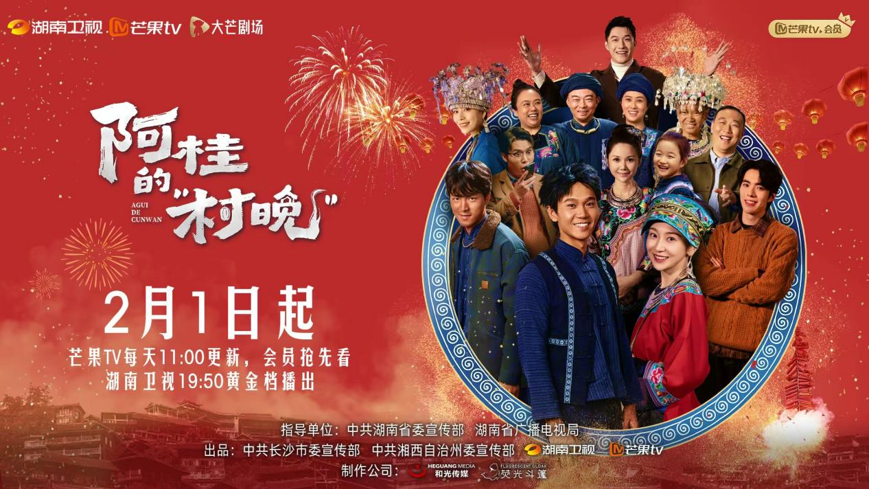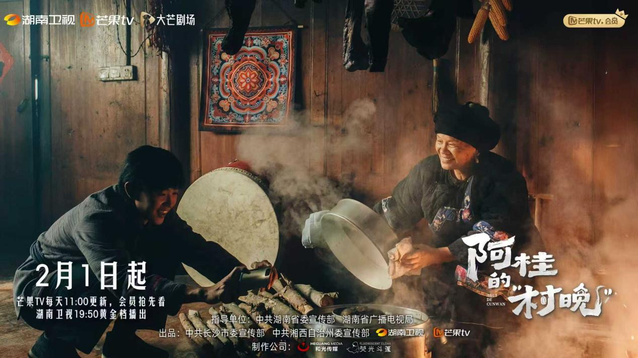 由中共湖南省委宣传部、湖南省广播电视局指导,中共长沙市委宣传部、中共湘西自治州委宣传部、湖南卫视、芒果TV大芒剧场、湖南和光传媒有限责任公司联合出品的田园治愈文旅微短剧《阿桂的“村晚”》正式定档,将于2月1日起在湖南卫视、芒果TV双平台温暖上线,芒果TV每天11:00更新,会员抢先看;湖南卫视19:50黄金档播出。